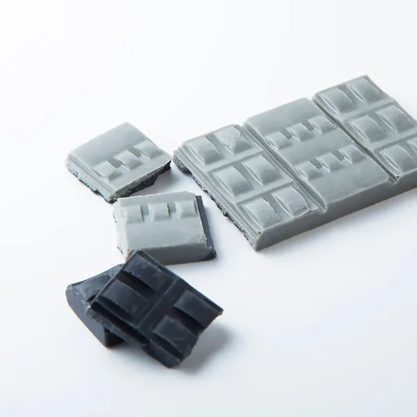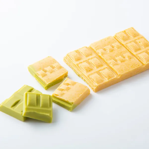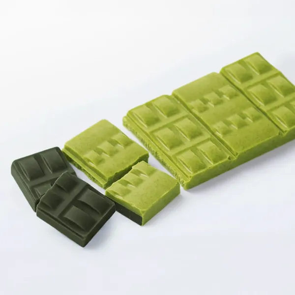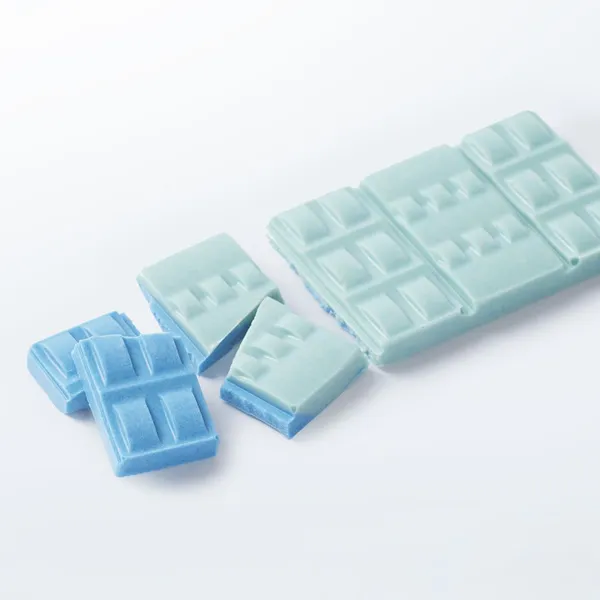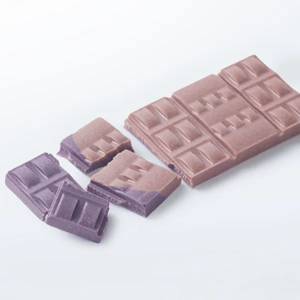 (1)ひとつの板チョコで3つの味(左、混ざり合う真ん中、右)を楽しめる3層グラデーションがあること。